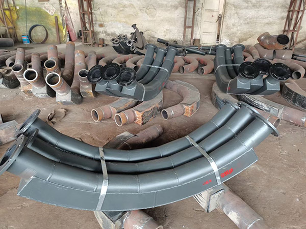 耐磨陶瓷弯头使用广泛是自蔓延工艺离心浇铸内衬陶瓷弯头,这种弯头生产速度快,工艺简单,安装方便,价格低,交货速度快,现场使用提交安装方便,可以直接焊接,也可以法兰连接,适合长距离输送介质,几百米甚上千米。